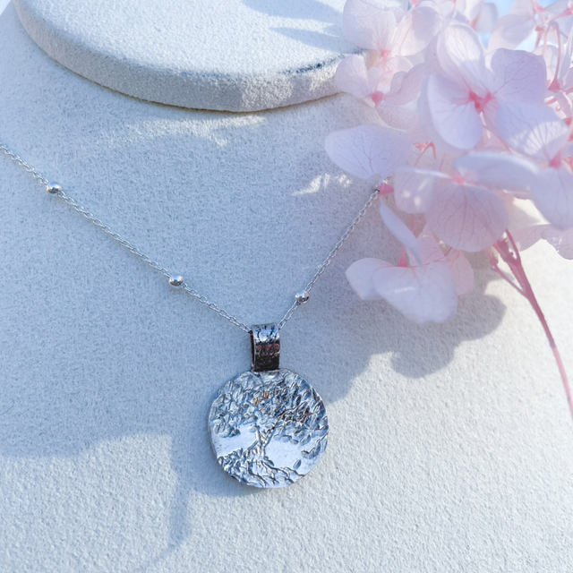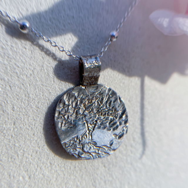 Cette médaille en argent 925, façonnée et ciselée à la main dans mon atelier en Bretagne, représente l’arbre de vie, un symbole universel de force, d’ancrage et de connexion entre la terre et le ciel. Ses racines profondes évoquent la stabilité et les origines, tandis que ses branches s’élevant vers le ciel rappellent la croissance, l’évolution et l’épanouissement. Un bijou intemporel, porteur de sens, à offrir ou à s’offrir.